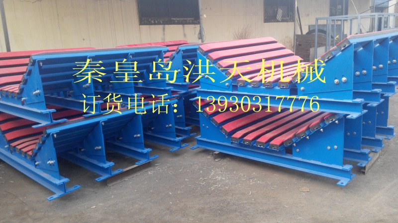 緩沖床主要用于替代緩沖托輥,緩沖床由緩沖條組成,而緩沖條主要應用優(yōu)良的高彈性特種橡膠層充分有效吸收了物料下落時的沖擊力,大大降低了物料下落時對輸送帶的沖擊,真正的改善了落料點的受力狀況。并采用特殊的UHMW高分子聚乙烯表面,使輸送帶與緩沖條之間的摩擦系數降到最低,且耐磨性好。緩沖床的使用保證了輸送帶的面與面的接觸,受力均勻,有效防止了由于托輥斷裂、脫落造成的皮帶縱向撕裂,同時大大降低了皮帶被銳器或尖銳物料穿透后縱向撕裂的概率。